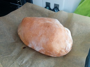- Den Brotteig auf einer bemehlten Arbeitsfläche ausrollen und den heißen Schinken drauf legen